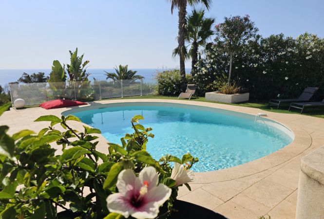Magnifiques prestations pour cette villa neuve face à la mer, dans le domaine privé et sécurisé d'Anthéor. Elle peut accueillir en tout confort jusqu'à 10 personnes, avec une très belle vue sur la mer, la climatisation dans toutes les pièces, et une piscine chauffée. Bâtie sur 3 n...