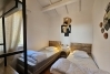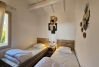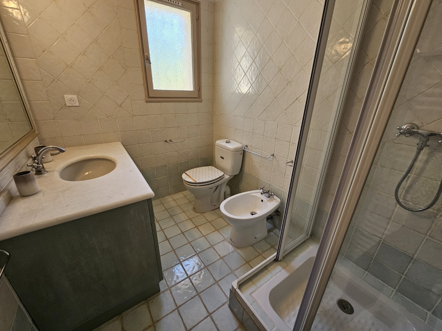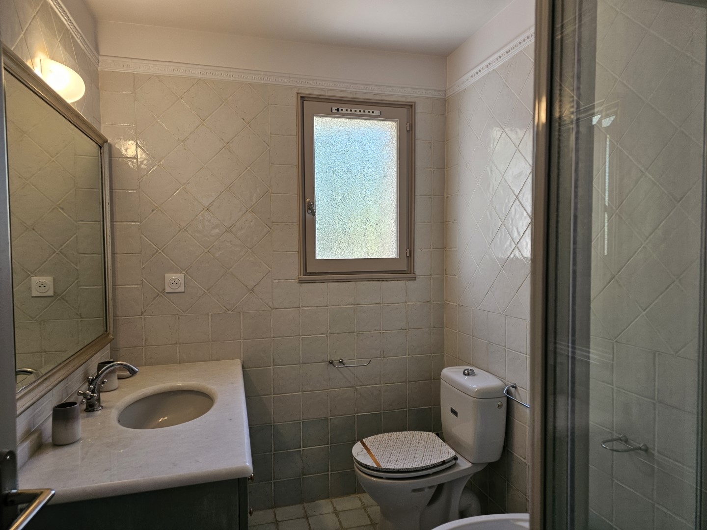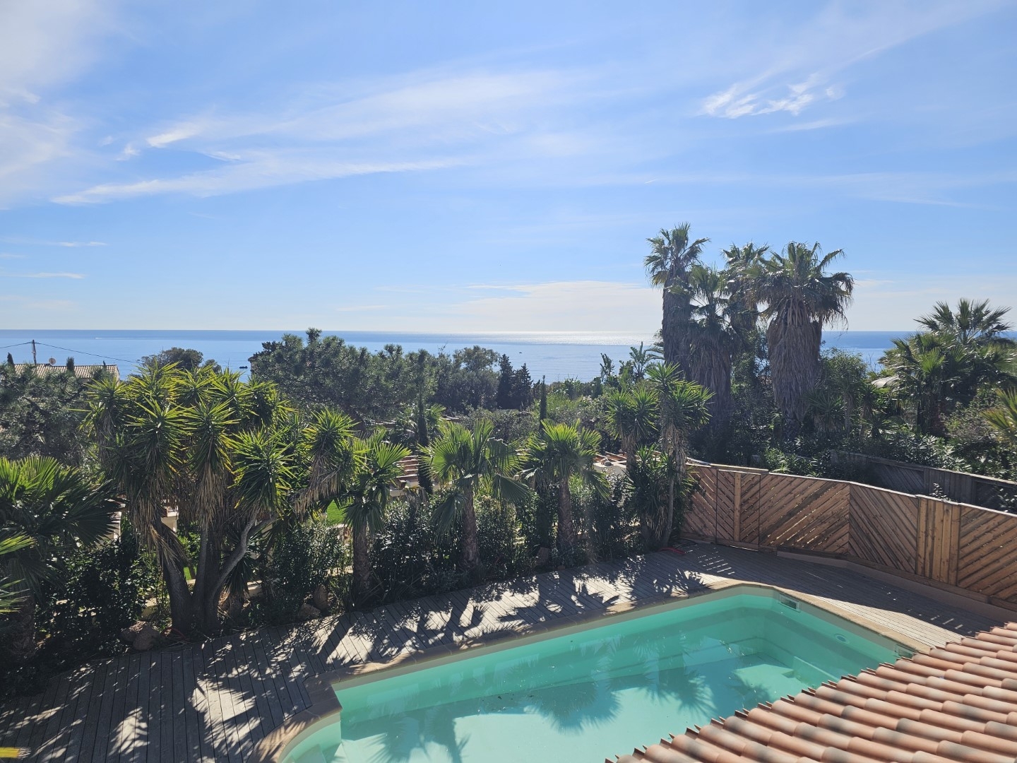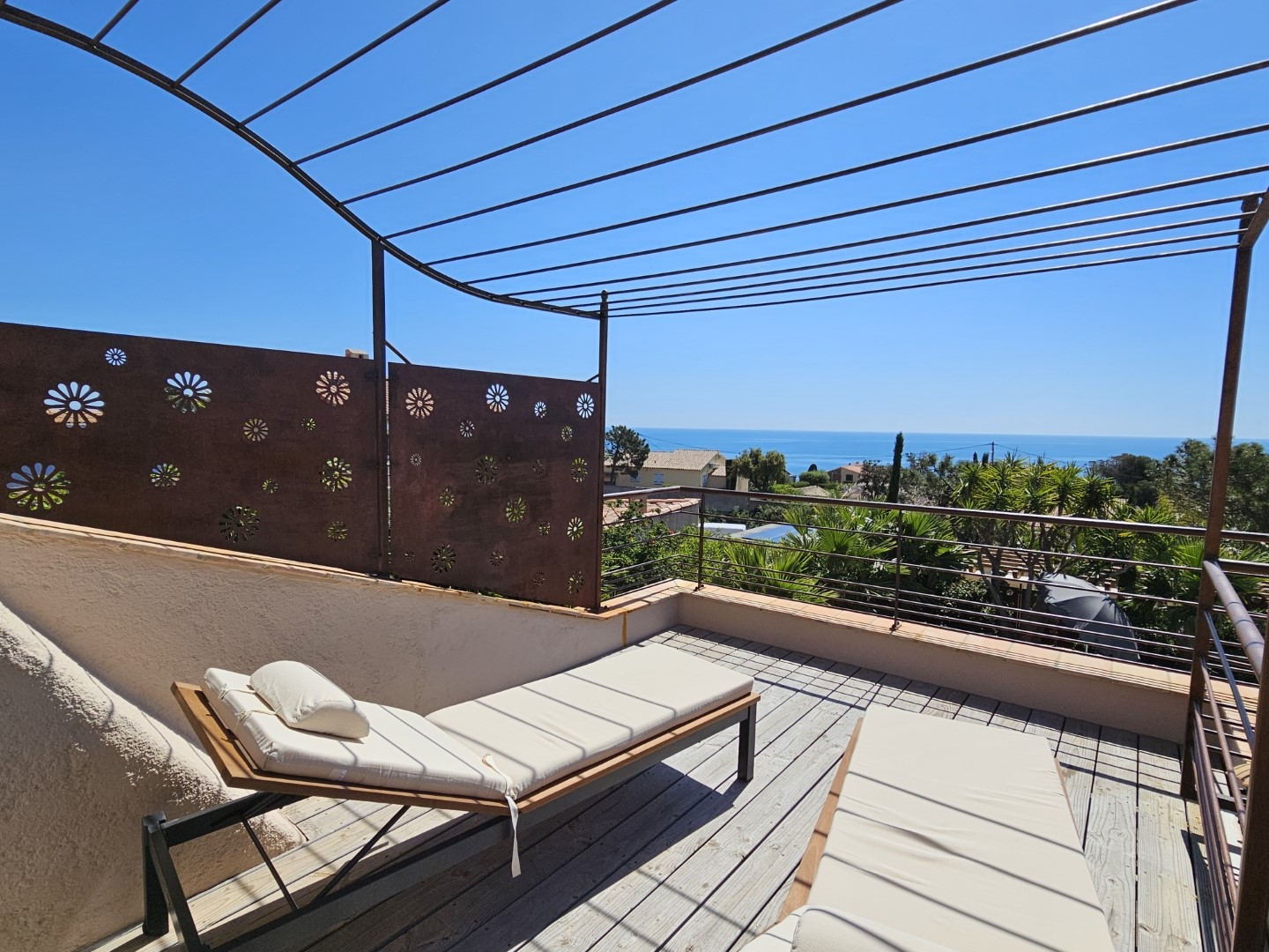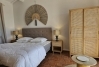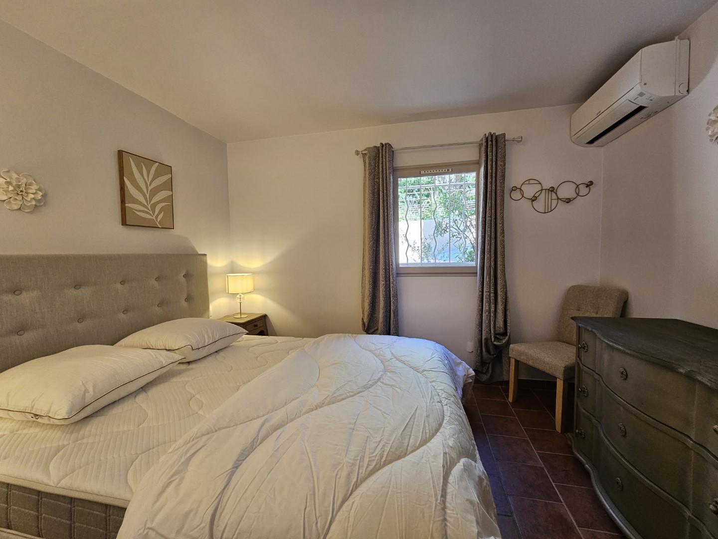 A l’étage, on retrouve une troisième chambre avec deux lits simples, une troisième salle d’eau avec wc, une quatrième chambre avec lit double 160x200, et la chambre de maître avec son grand lit double 180x200, TV, et sa belle terrasse avec une très jolie vue sur la mer. Pour plus de confort la maison est entièrement climatisée.