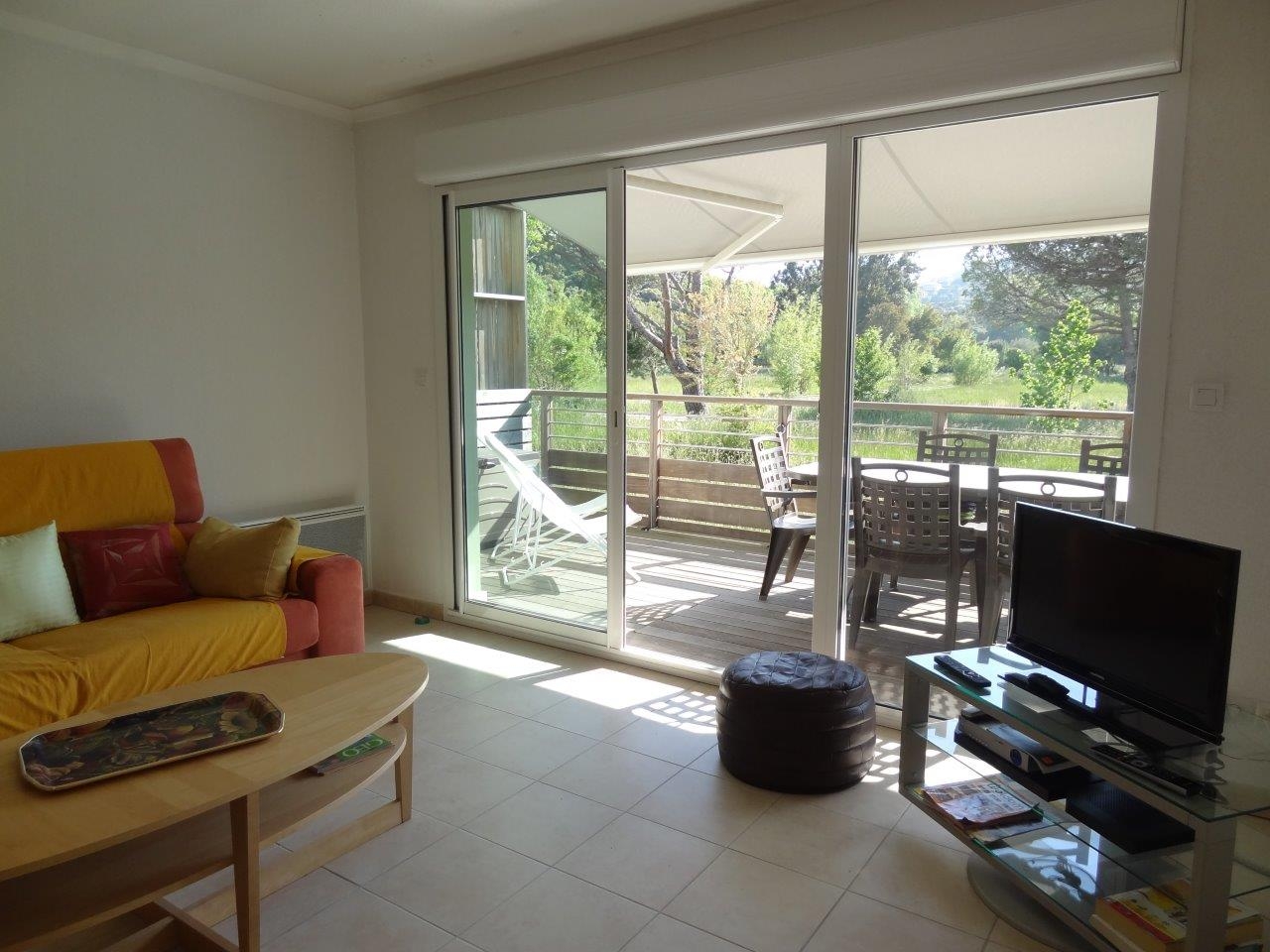 Il se compose d'un hall d'entrée, une cuisine américaine entièrement équipée, un salon avec canapé lit (avecun vrai matelas), un coin repas avec table et chaises, deux belles chambres avec placards, une avec un lit deux places en 160cm et l'autre avec deux lits simples, une salle de bains, un wc séparé et une terrasse de 17m² exposé sud ouest, avec vue sur le parc et les colines d'Agay.