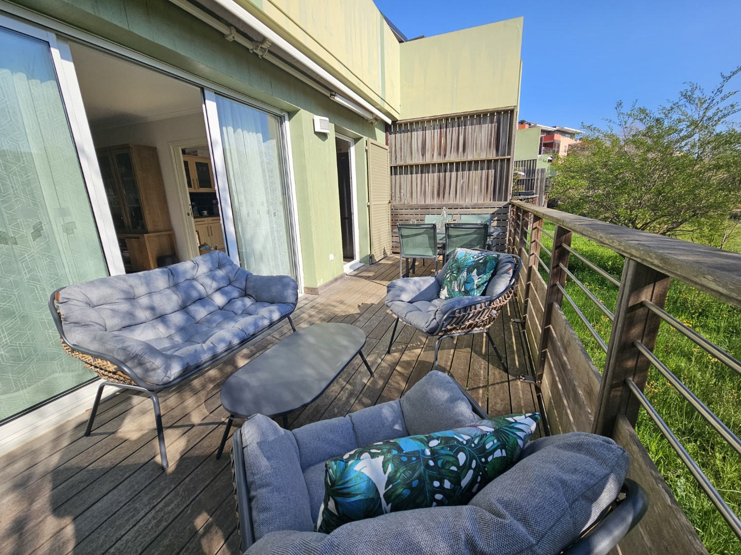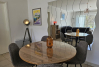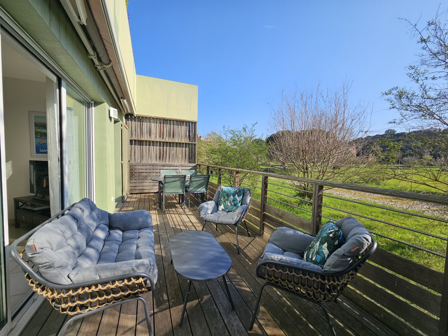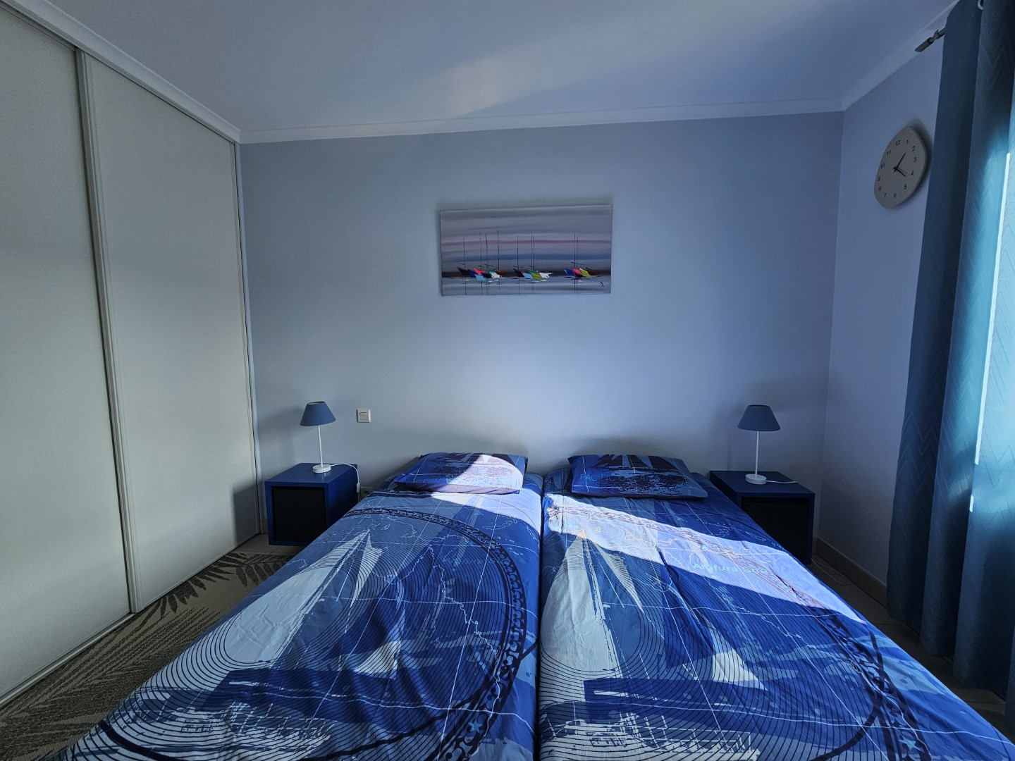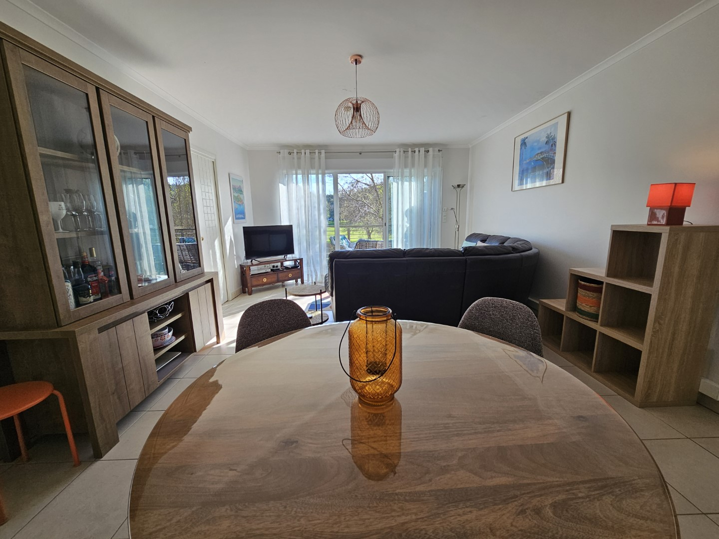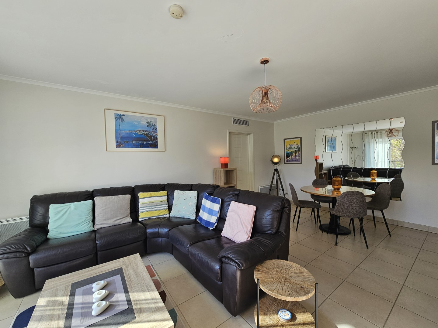 Dans une superbe résidence récente de standing, située à 200m de la plage et des commerces, cet appartement trois pièces de 75m² vous accueille pour d'excellentes vacances au bord de mer. Il se compose d'un séjour très spacieux avec un coin repas, et un coin détente (grand canapé d'angle face au parc de la résidence, TV écran plat, lecteur DVD, wifi...). Une cuisine entièrement équipée vous permettra de vous sentir comme chez vous avec tout le nécessaire (lave vaisselle, four, cafetière, bouilloire, grille pain, micro ondes, lave linge...). Le séjour et la cuisine s'ouvrent sur une belle terrasse plongée dans la verdure du parc de la résidence. La partie nuit dispose de deux grandes chambres avec placards, dont une avec un grand lit double (160x200), et l'autre avec deux lits simples (90x190) plus un lit d'appoint, et d'une salle de bains avec deux vasques et une baignoire.