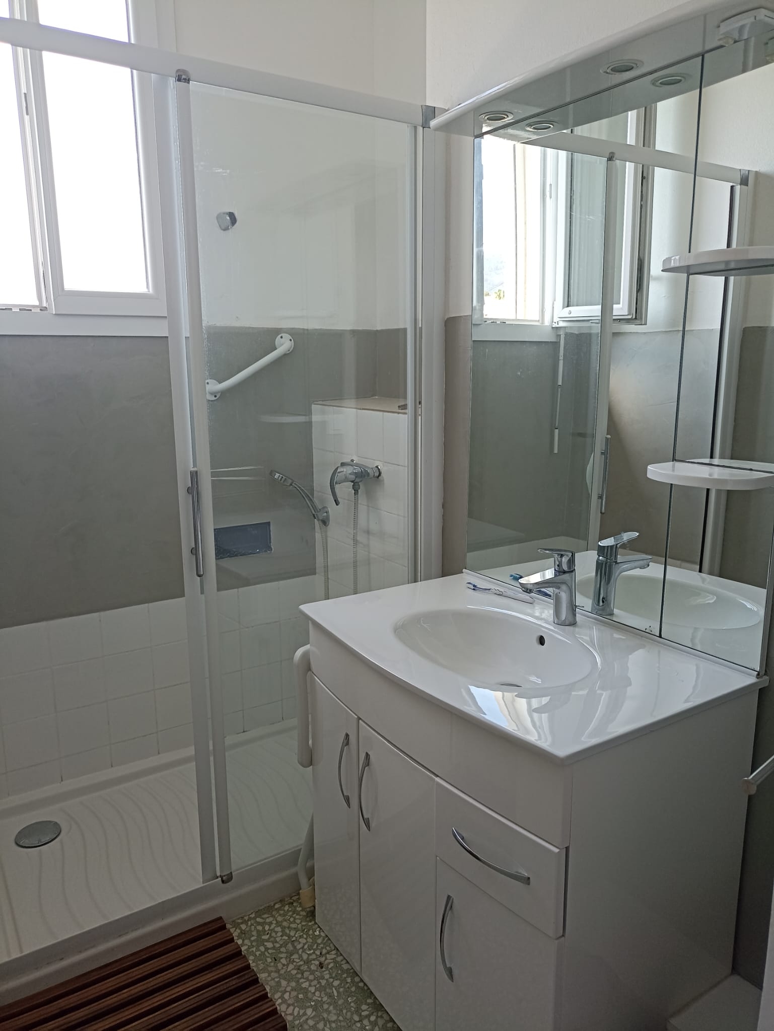 Cette villa familiale de vacances, face à la mer et à l'île des Vieilles, vous accueille pour un séjour ensoleillé et reposant. La villa est divisée en deux appartements indépendants, avec à l'étage : un séjour donnant sur une terrasse avec une magnifique vue sur la mer, une cuisine séparée toute équipée (frigo, congélateur, four, micro ondes, cafetière, etc.), une première chambre avec un lit simple, une deuxième avec deux lits simples superposés, et une troisième chambre avec lit double 140x190 (séparée du séjour par une paroi mobile). une salle d'eau et un wc séparé complètent cet étage.