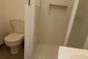 Au niveau inférieur se trouvent : un séjour, une chambre avec un lit double 140x190 + lit bébé à disposition, une deuxième chambre avec lit double 140x190, une salle d'eau, une troisième chambre avec lit double et lavabo, et une quatrième chambre avec 4 lits simples superposés, et une salle d'eau. Toutes ces pièces donnent sur le jardin, d'où la vue est aussi très agréable sur la mer. Dans le jardin sont mis à disposition une table et des chaises pour les repas, un barbecue, et des transats.