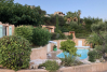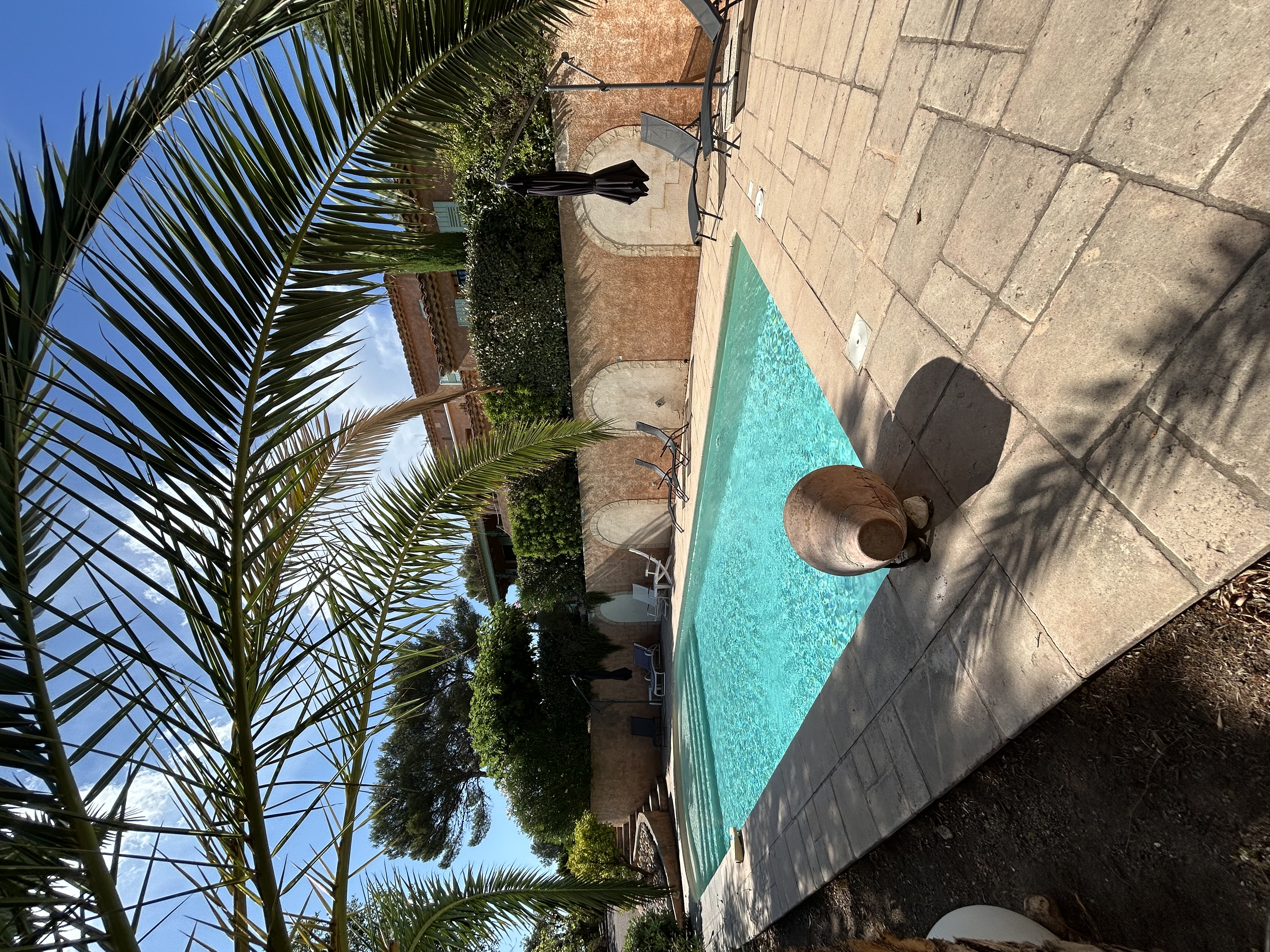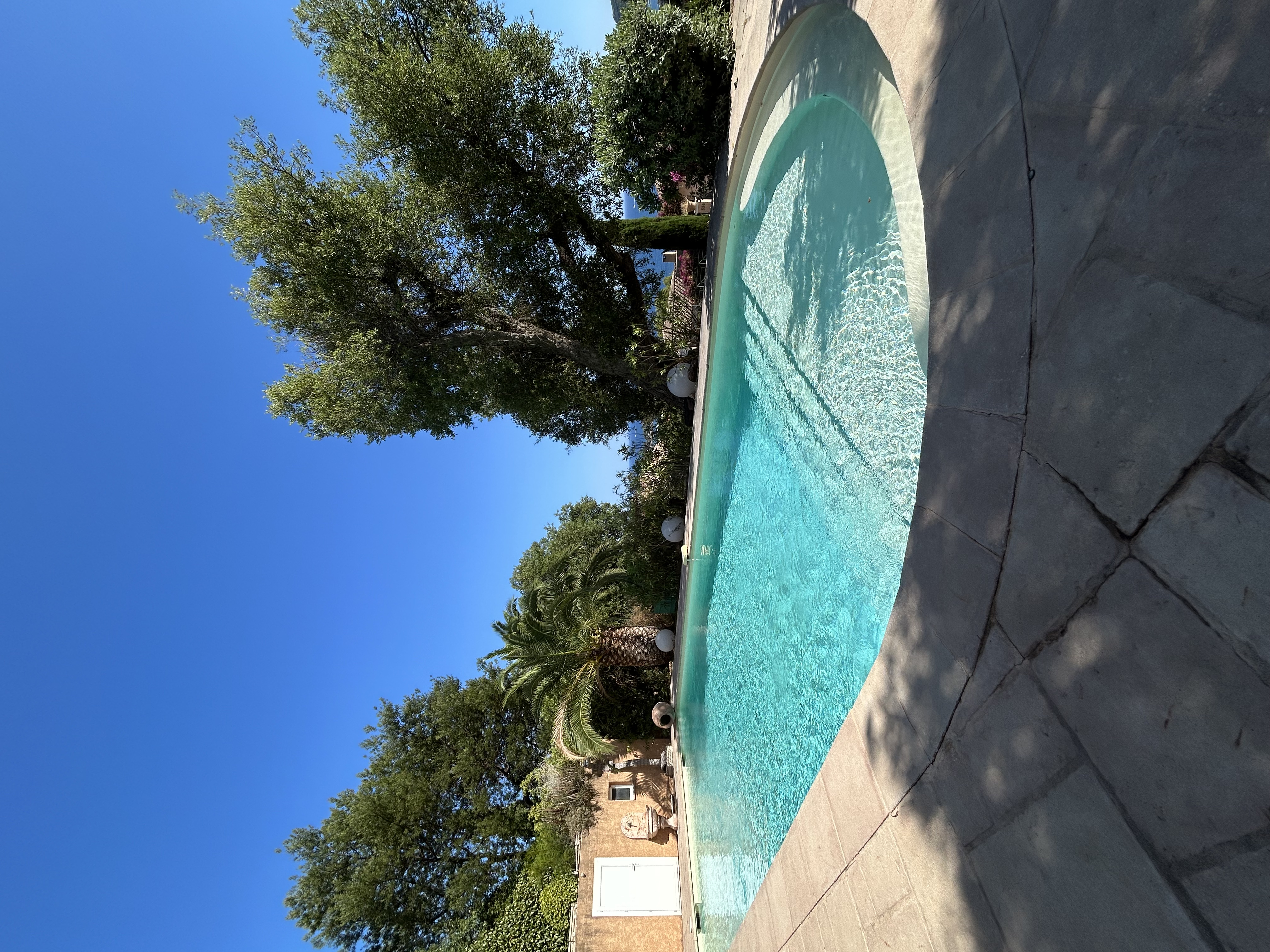 En contre bas de la maison, à l’abri des regards, vous ne quitterez plus la piscine, spacieuse elle aussi (environ 10 mètres sur 4 mètres avec alarme), et profiterez des bains de soleil et parasols à disposition.