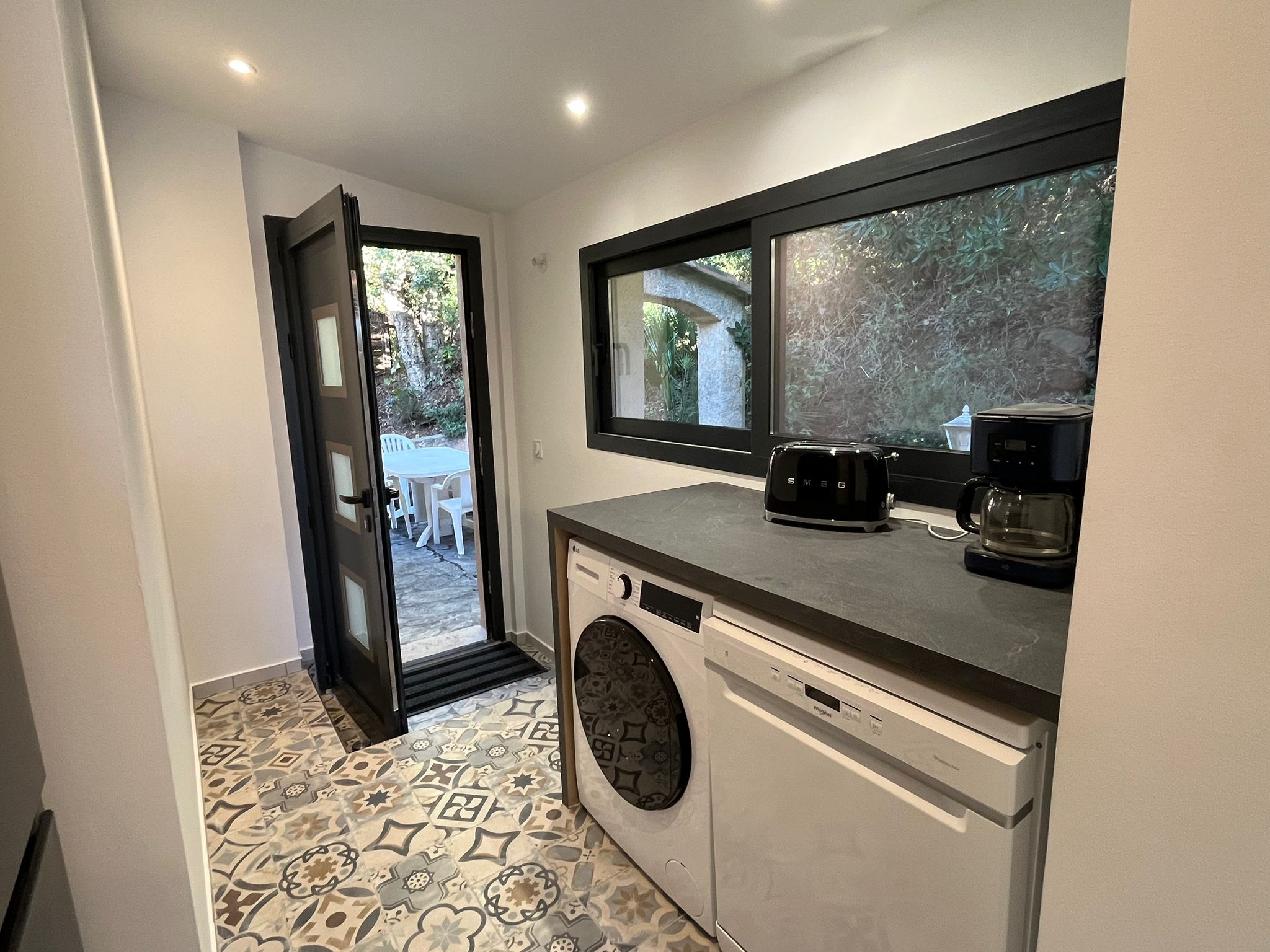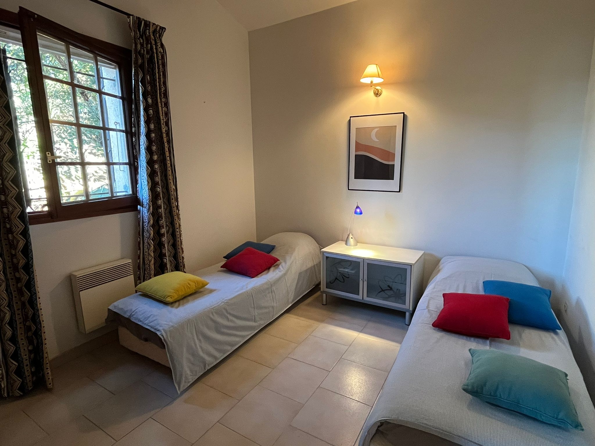 Possibilité d’aller à pied à la plage de la Baumette et au petit centre commercial en 10 minutes à pied. La maison se trouve dans un domaine calme et résidentiel, et très arboré, le cadre est bucolique et reposant.