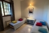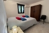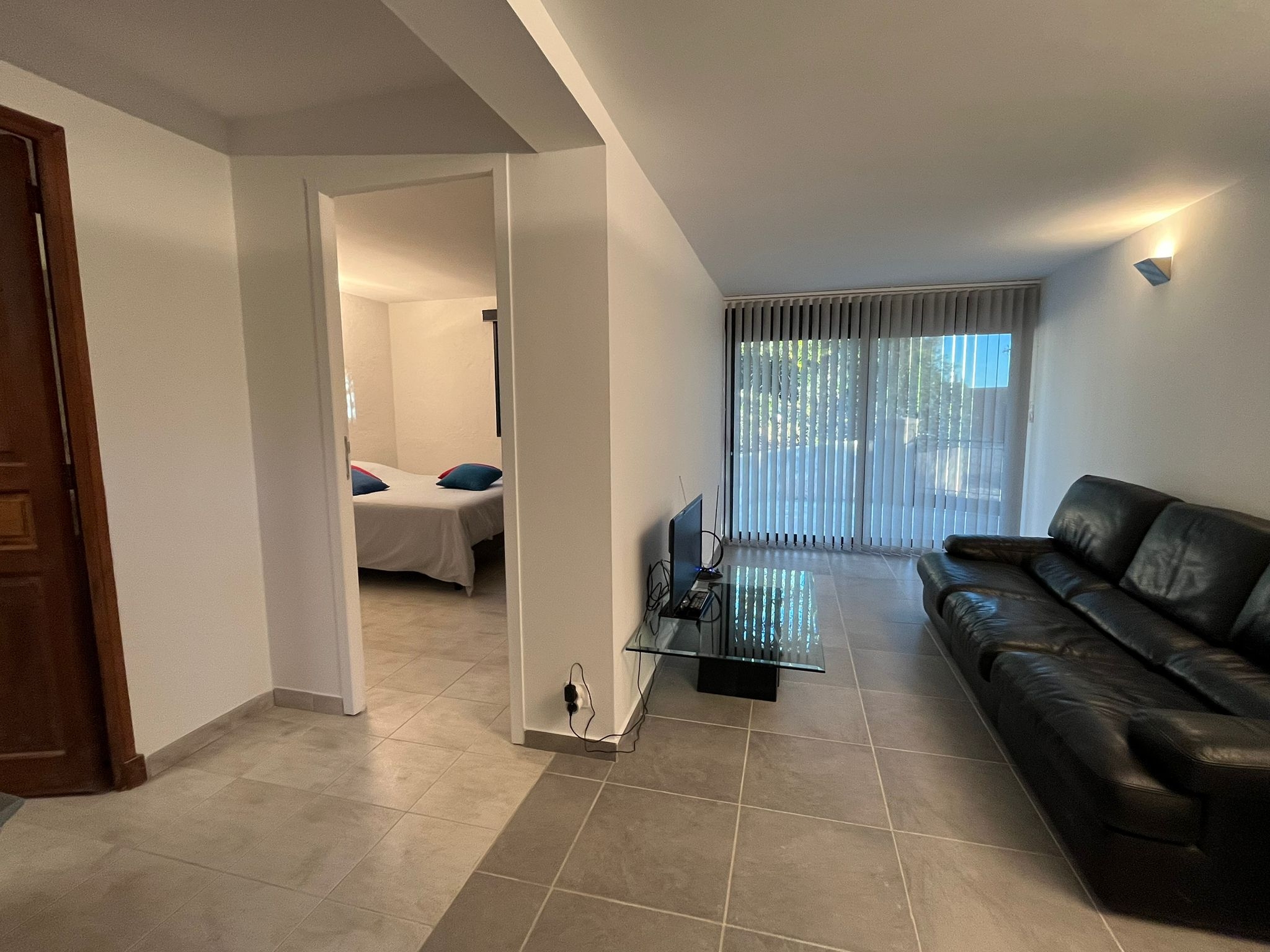 personnes. La maison se divise en deux appartements individuels, le niveau bas est composé d’une petite cuisine équipée, une chambre traversante avec deux lits simples, un séjour avec canapé et coin TV, une salle d'eau avec cabine de douche, lavabo et WC, une chambre avec lit double 160x200, et une 2eme salle d’eau. Une jolie terrasse devant l’appartement permet de profiter du jardin.